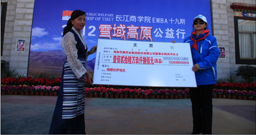 2012年10月13日,公司董事長陶靈萍女士所在的長江商學(xué)院第十九期EMBA班組織的 “雪域高原公益活動(dòng)”在西藏拉薩市城關(guān)區(qū)吉崩崗小學(xué)舉行。捐贈(zèng)活動(dòng)上,公司分別向西藏拉薩、山南和林芝地區(qū)捐贈(zèng)了價(jià)值1269800、1002200、1002200元的藥品,其中包括注射用炎琥寧、注射用頭孢唑肟鈉等,合計(jì)價(jià)值327萬元。