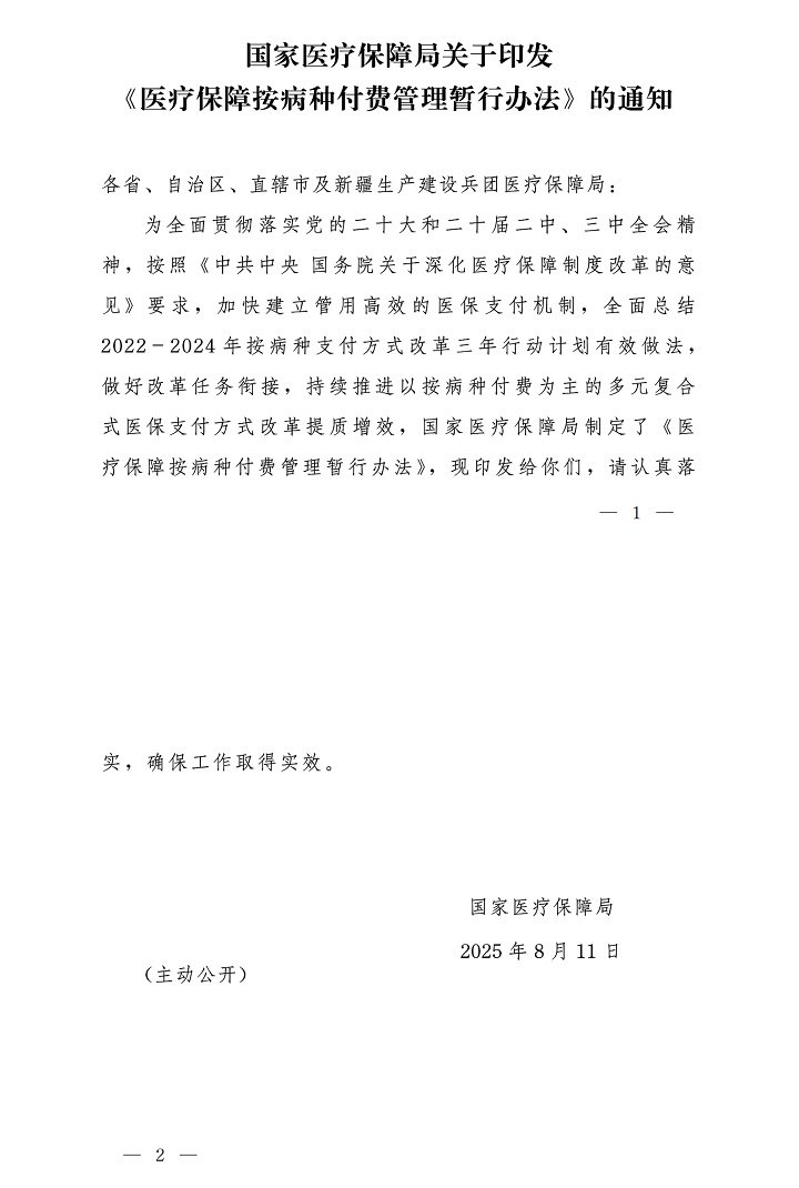 國家醫(yī)療保障局關于印發(fā)《醫(yī)療保障按病種付費管理暫行辦法》的通知
